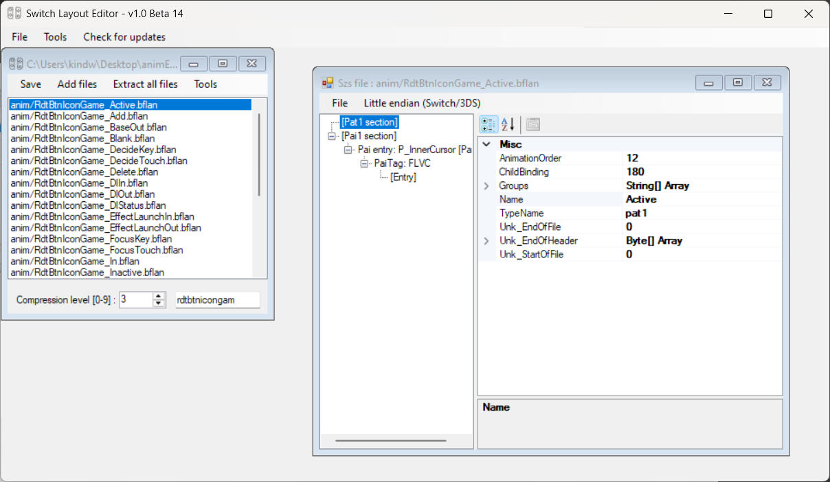 Now about creating our actual animation, we will do so by editing the N_Root pane from RdtBtnIconGame.bflyt, which means adding an entry to the pane list.